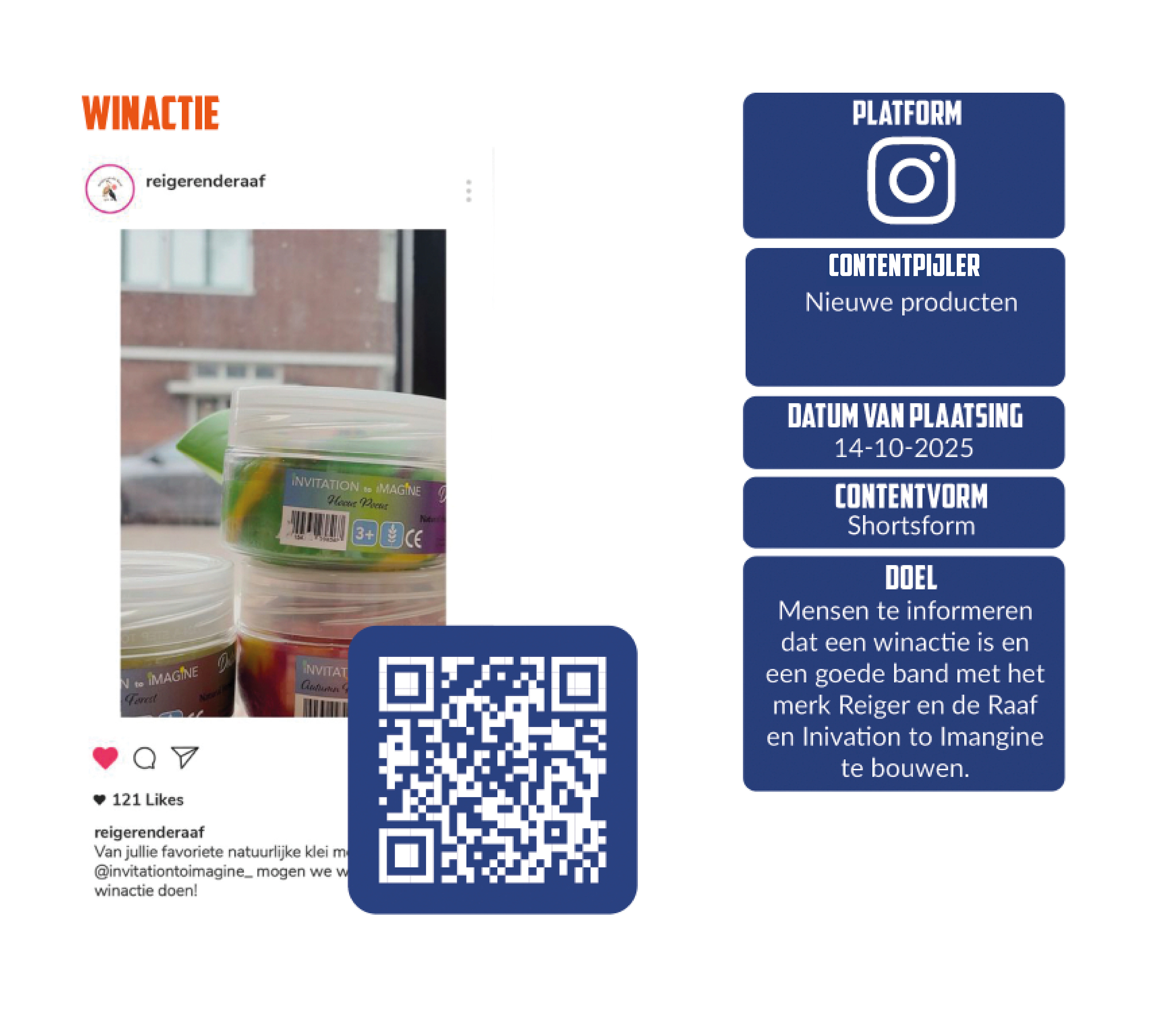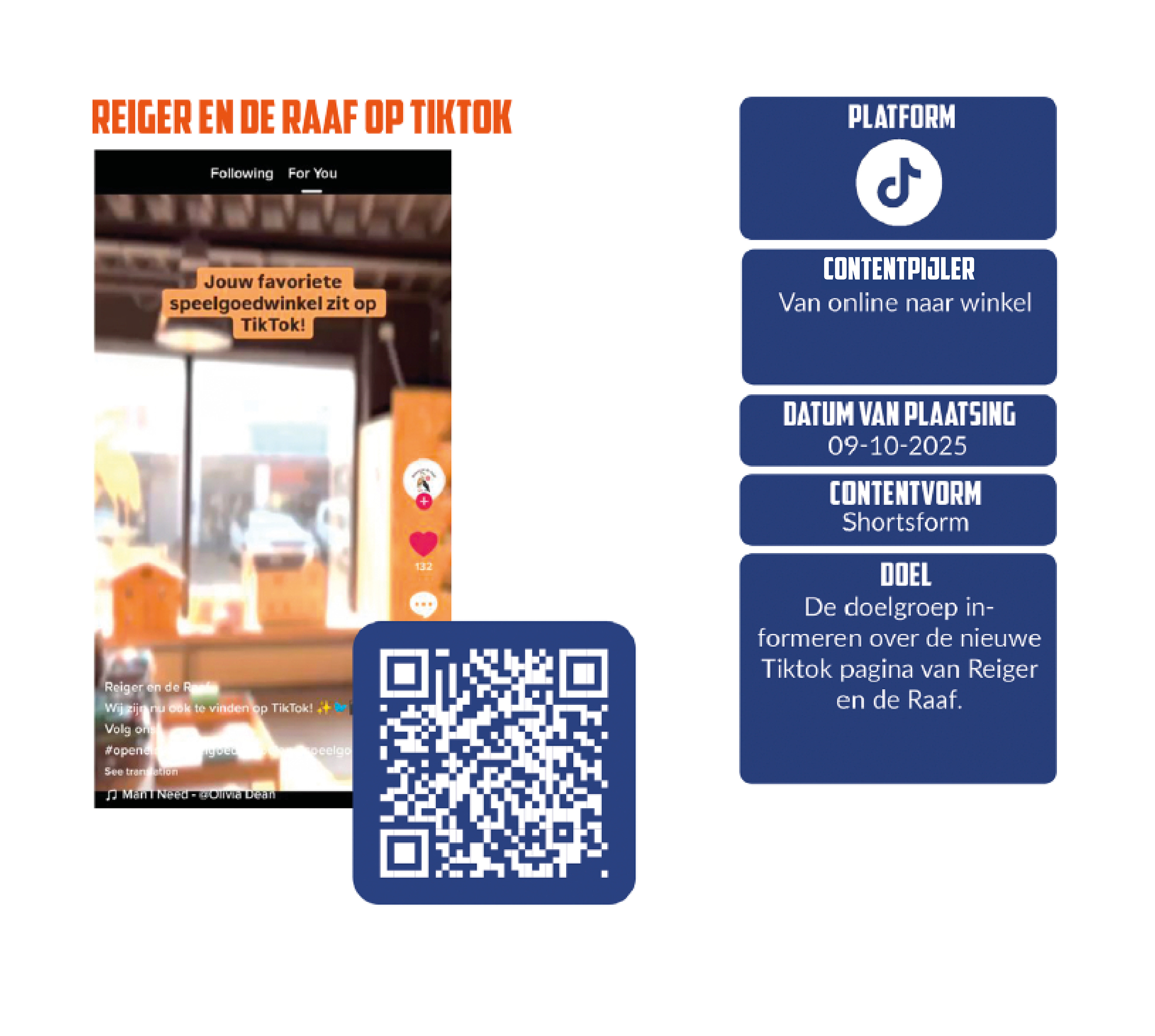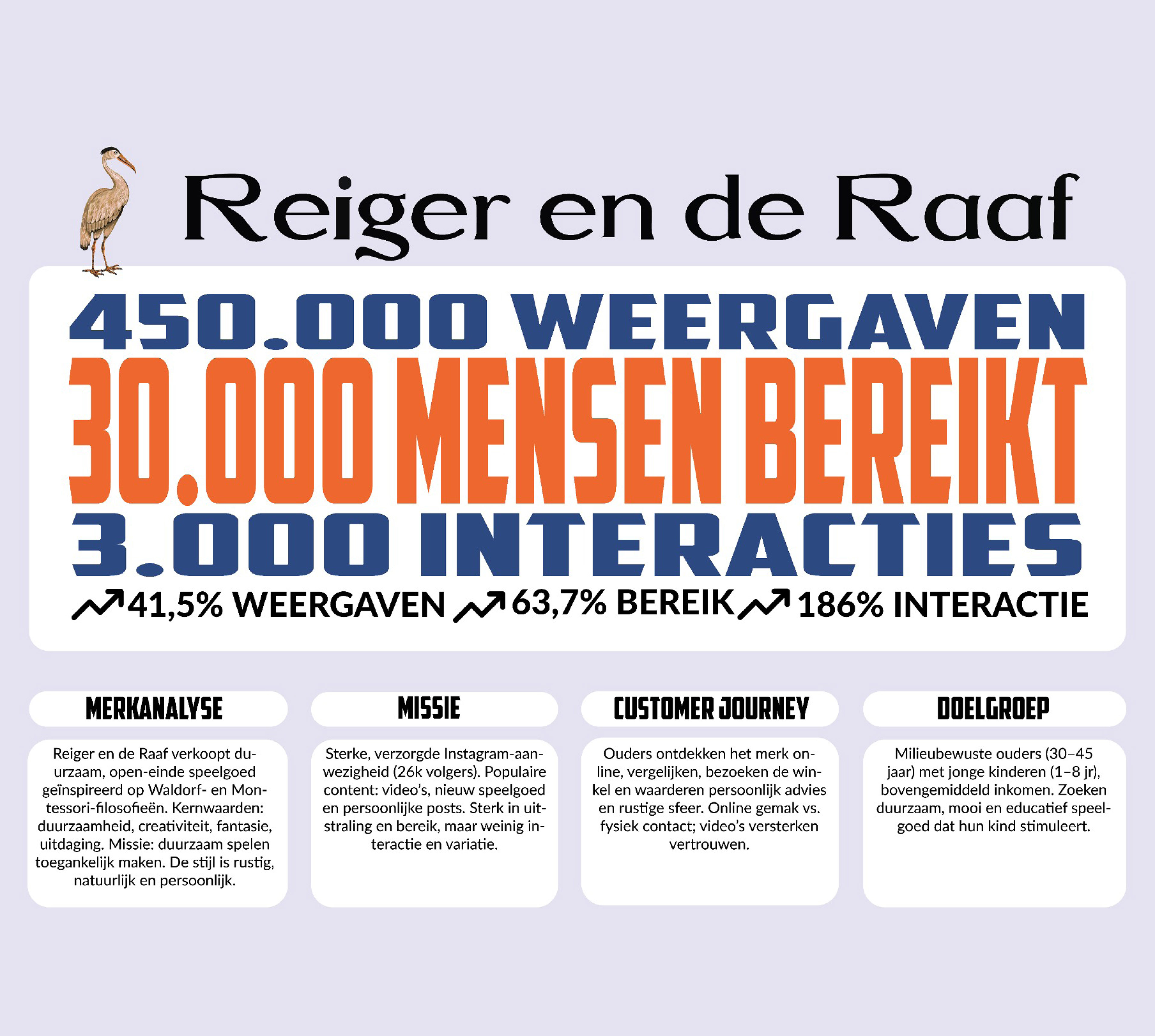 In de opdracht ‘Social Takeover’ nam ik samen met drie medestudenten de socialmediakanalen van een echte opdrachtgever over. We kozen hiervoor speelgoedwinkel Reiger en de Raaf in Breda, zowel de fysieke winkel als de online kanalen.