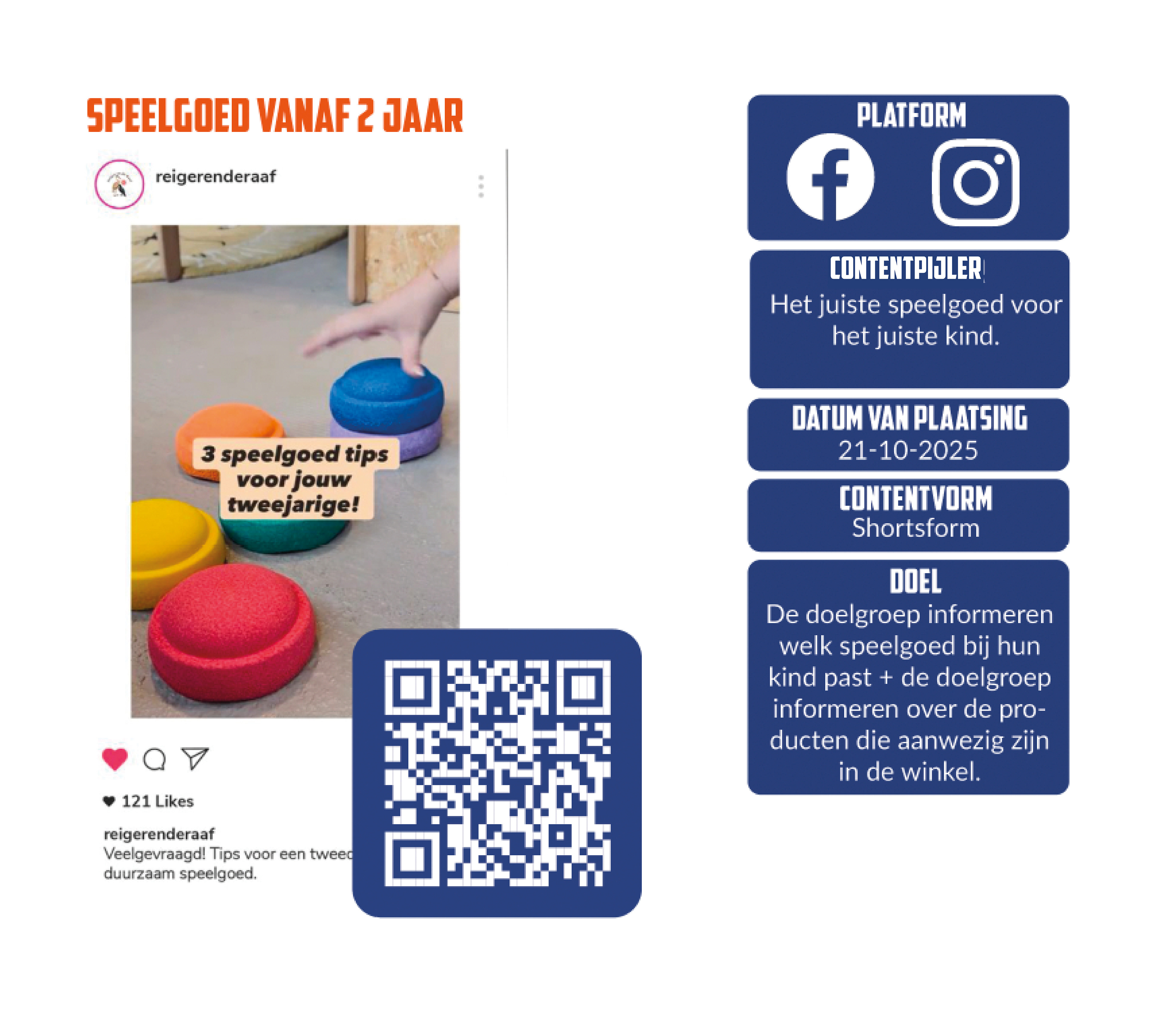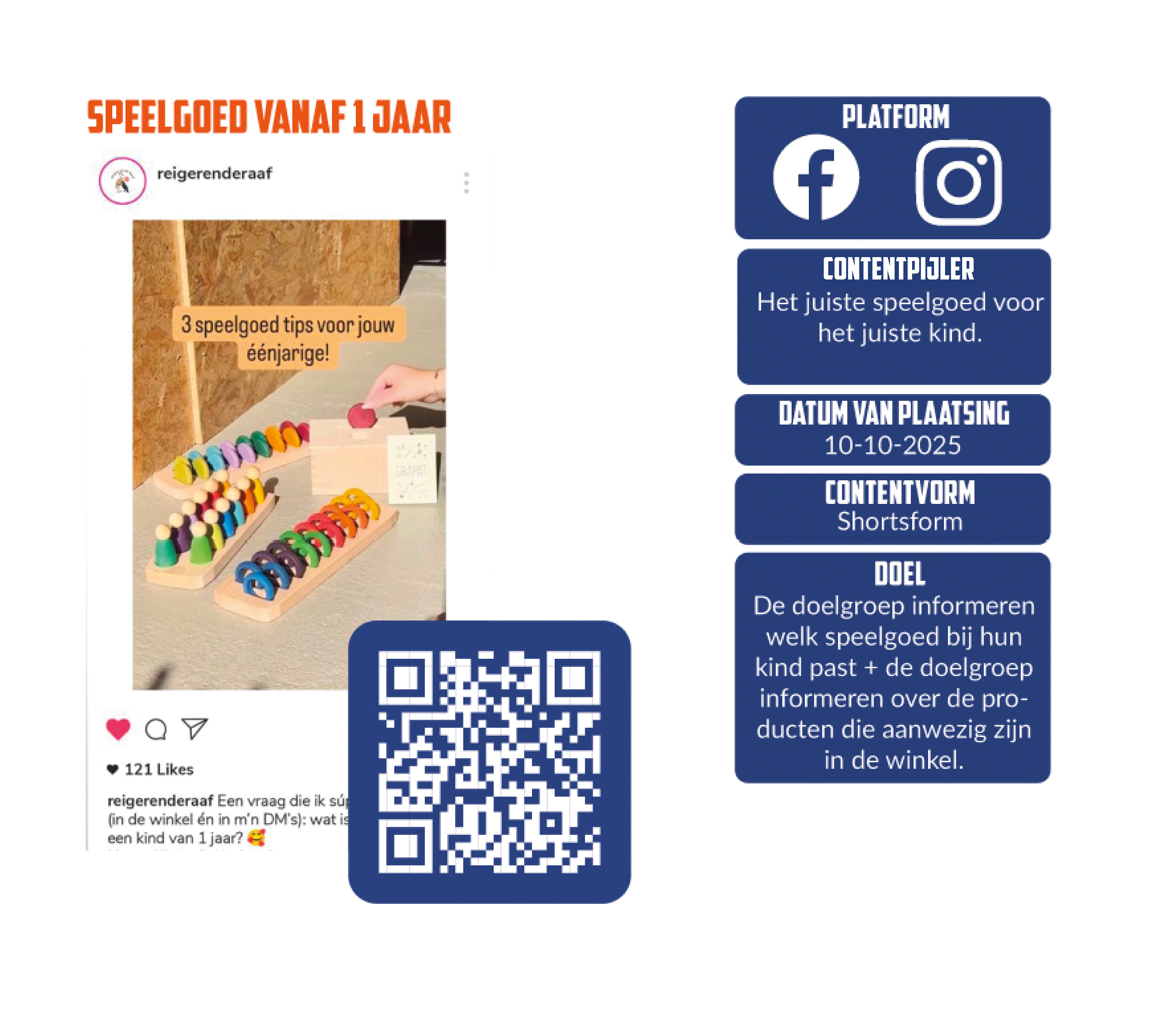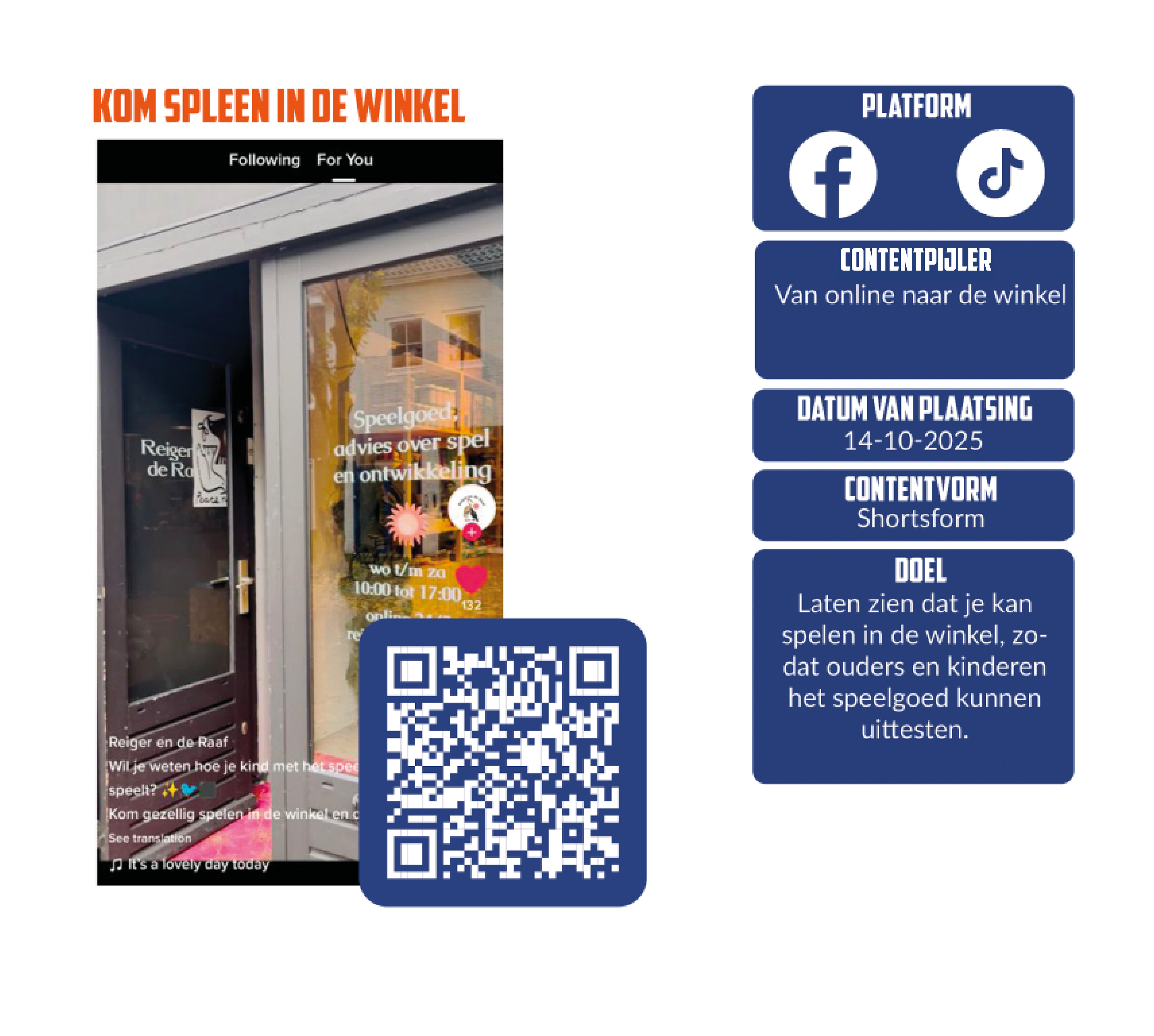 In de opdracht ‘Social Takeover’ nam ik samen met drie medestudenten de socialmediakanalen van een echte opdrachtgever over. We kozen hiervoor speelgoedwinkel Reiger en de Raaf in Breda, zowel de fysieke winkel als de online kanalen.